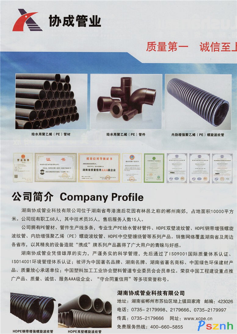 | 公司名稱(chēng): | 湖南協(xié)成管業(yè)科技有限公司 | ||