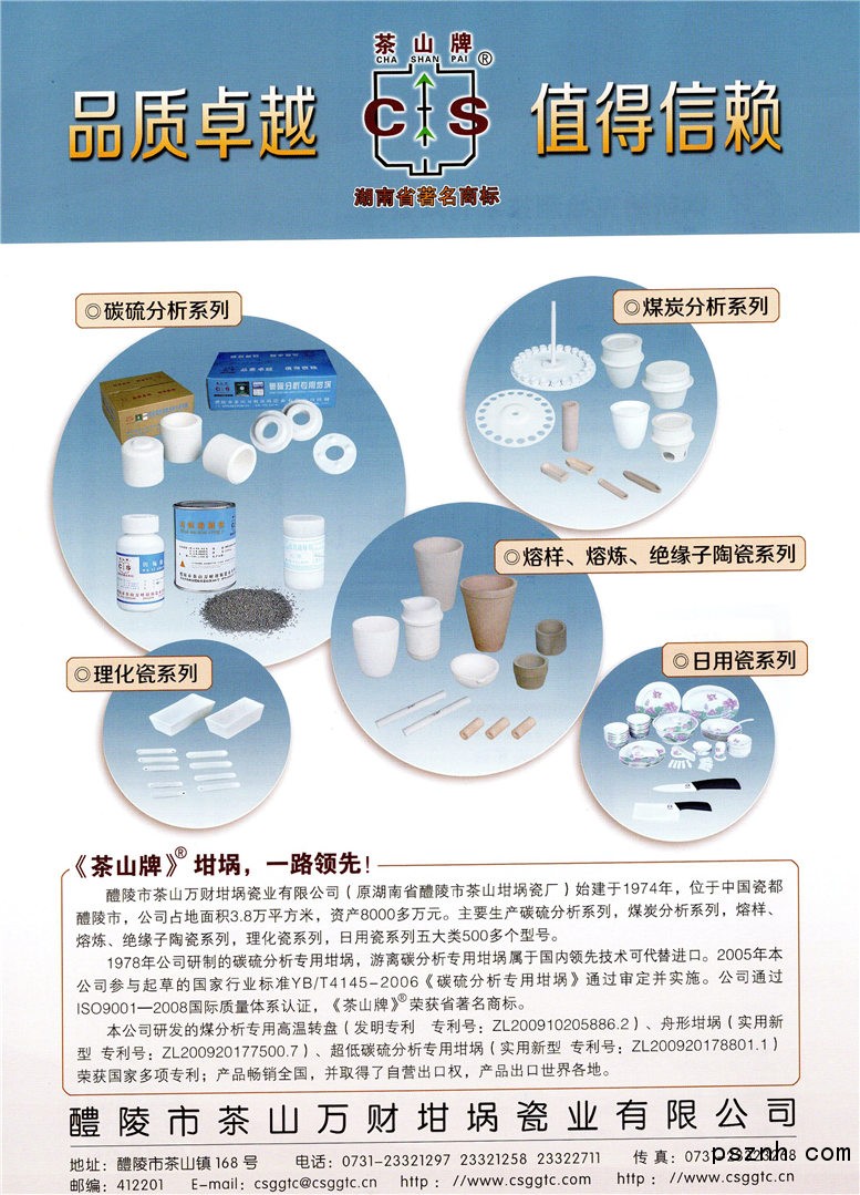 經營范圍: 日用瓷、炻瓷、工業(yè)瓷、碳硫分析專用坩堝及其它坩堝生產銷售;純鎢、純錫、錫鎢等金屬助熔劑制造銷售 。(依法須經批準的項目,經相關部門批準后方可開展經營活動)