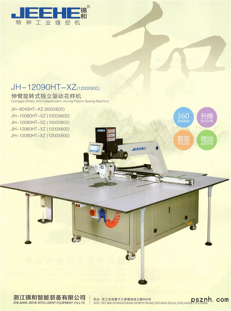 浙江錦和智能裝備有限公司 不升降伸臂旋轉(zhuǎn)式花樣機_伸臂旋轉(zhuǎn)式可升降獨驅(qū)花樣機系列_四針六線高速拼縫機