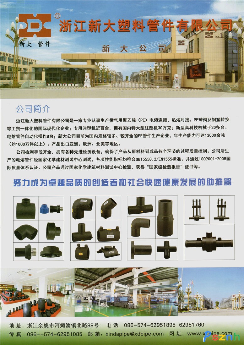 | 公司名稱(chēng): | 浙江新大塑料管件有限公司 | ||
