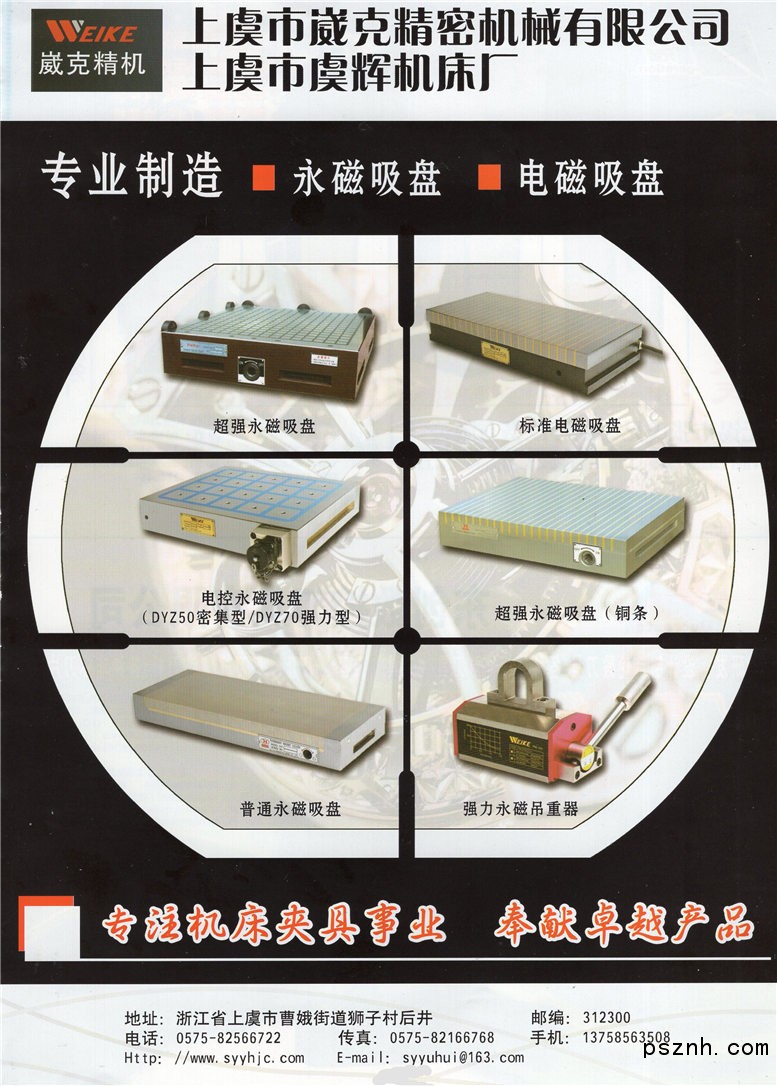 | 經(jīng)營范圍: | 精密機(jī)械、各類吸盤、刀具、模具、機(jī)床設(shè)備及附件的制造、銷售。 | ||