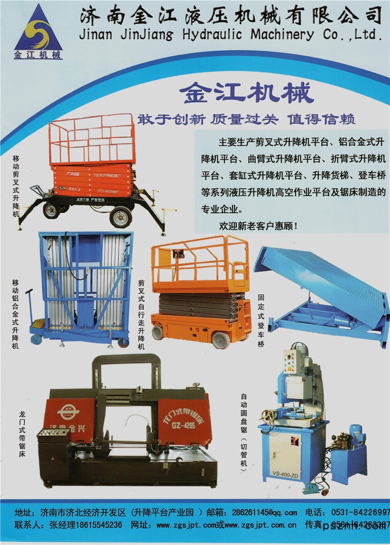 | 經(jīng)營(yíng)范圍: | 升降作業(yè)平臺(tái)、曲線施工升降機(jī)、液壓折臂起重機(jī)、電動(dòng)平車、電剪刀、登車橋、車斗、機(jī)械零部件、鋸床及配件、平板玻璃制造機(jī)械、門窗加工設(shè)備、電動(dòng)雕刻工具、住宅電梯、汽車起重機(jī)、輸送機(jī)械的生產(chǎn)、銷售;汽車、載貨電梯、登車橋的銷售;進(jìn)出口業(yè)務(wù)。(依法須經(jīng)批準(zhǔn)的項(xiàng)目,經(jīng)相關(guān)部門批準(zhǔn)后方可開展經(jīng)營(yíng)活動(dòng)) | ||
