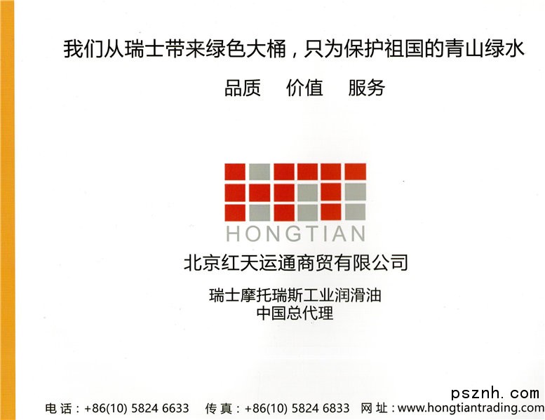 北京紅天運(yùn)通商貿(mào)有限公司 潤滑油點(diǎn)擊:388 查看原圖![]() ![]() ![]() 北京紅天運(yùn)通商貿(mào)有限公司 電話:010-58246633 傳真:010-58246833 E-mail: johnny.zhang@hongtiantrading.com 地址:北京市朝陽區(qū)北苑路168號(hào) 中安盛業(yè)大廈1809室 |