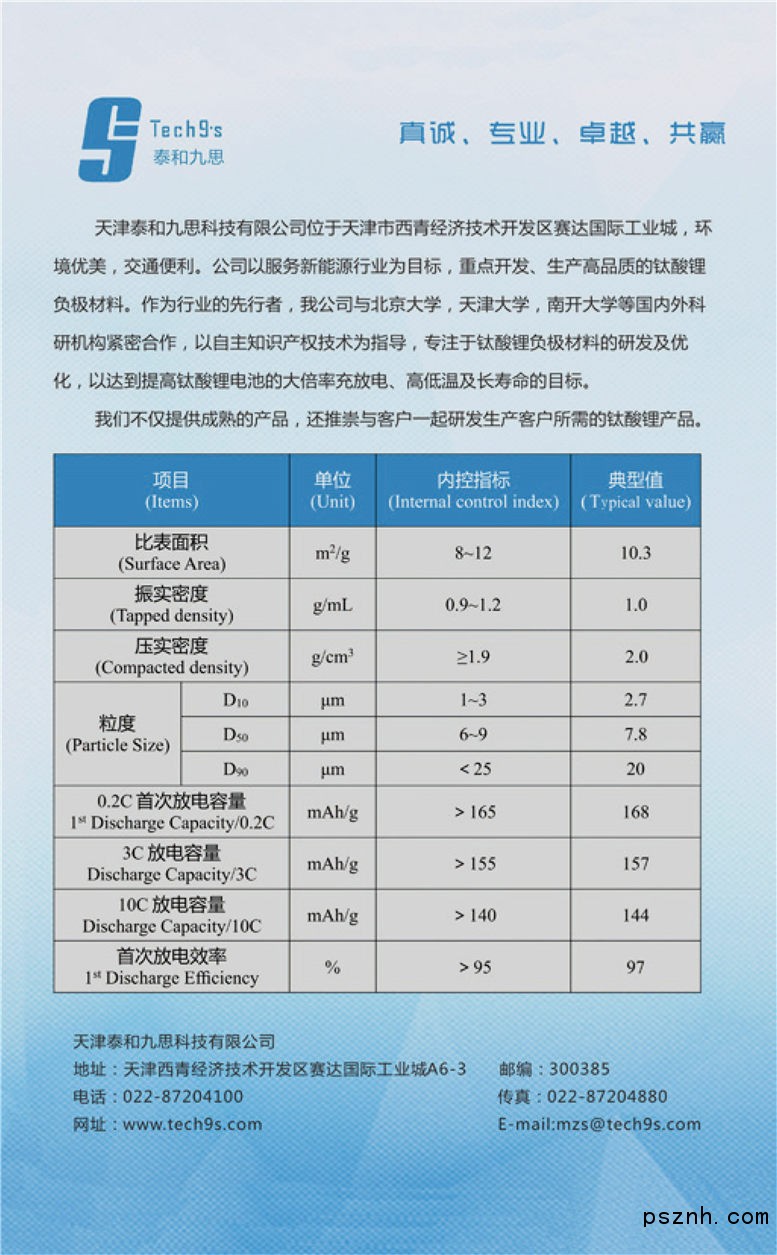 天津泰和九思科技有限公司 電池及其材料 鈦酸鋰負極材料 鈦酸鋰電池 新能源 深圳電池展