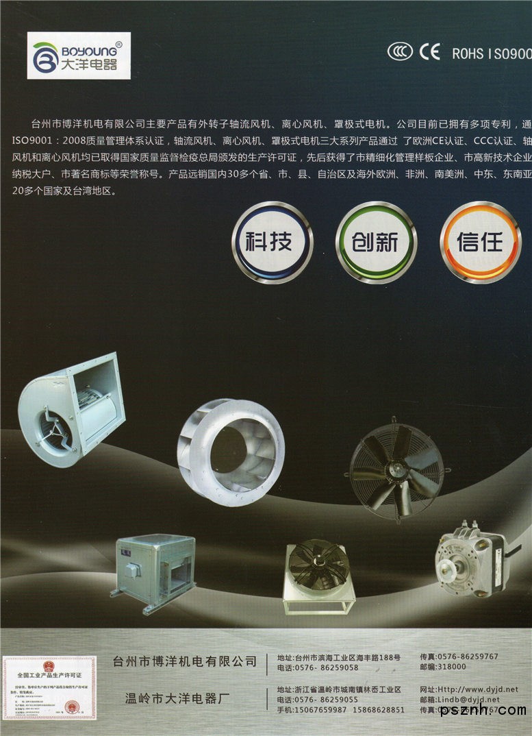 臺(tái)州市博洋機(jī)電有限公司 外轉(zhuǎn)子軸流風(fēng)機(jī) 離心風(fēng)機(jī) 罩極式電機(jī)