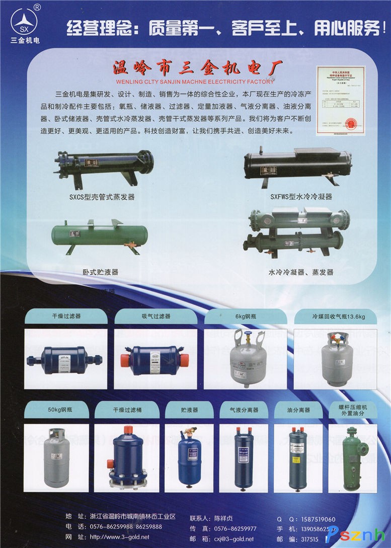 溫嶺市三金機(jī)電廠(chǎng) 氧瓶 貯液器 過(guò)濾器