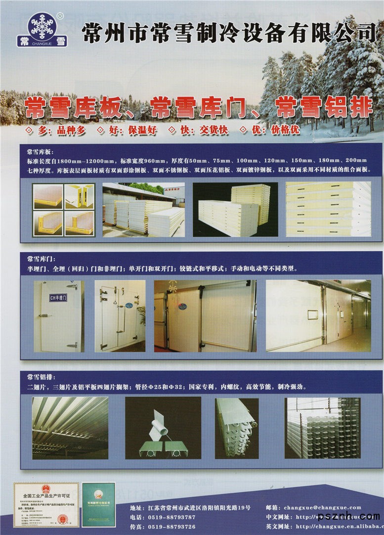 常州市常雪制冷設(shè)備有限公司 冷庫(kù)用聚氨酯夾芯板 庫(kù)門 鋁排