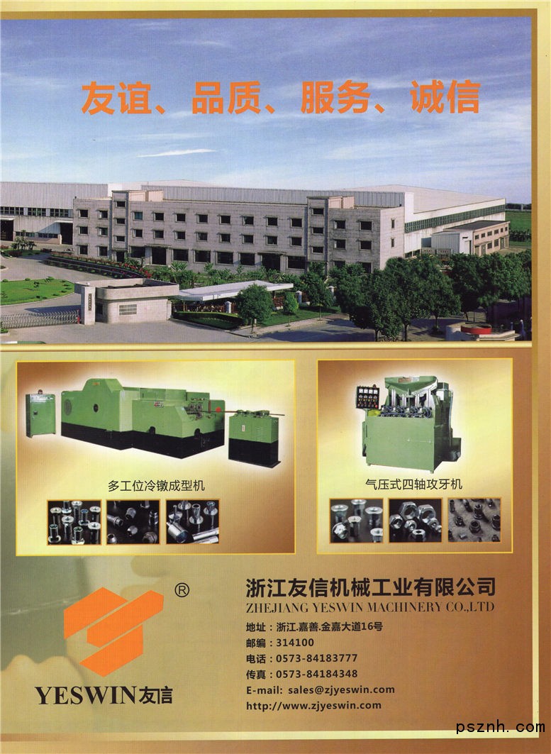 | 經(jīng)營(yíng)范圍: | 生產(chǎn)銷售標(biāo)準(zhǔn)件制造設(shè)備及零部件、起重機(jī)械、中高檔標(biāo)準(zhǔn)件、五金零件、汽車、機(jī)車、自行車?yán)涠斟懠援a(chǎn)產(chǎn)品的維修服務(wù);標(biāo)準(zhǔn)件制造設(shè)備及零部件、零件成型機(jī)及相關(guān)專用機(jī)、起重機(jī)械及零部件、鋼材、線材的批發(fā)、傭金代理(拍賣除外)及其進(jìn)出口業(yè)務(wù)。涉及許可證的憑證經(jīng)營(yíng)。 | ||