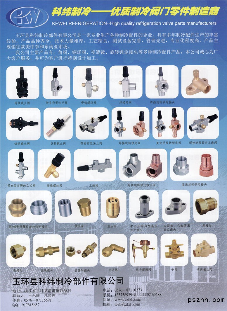 玉環(huán)縣科緯制冷部件有限公司 角閥_銅球閥_視液鏡點擊:744 查看原圖![]() ![]() ![]() 地址:浙江省玉環(huán)縣清港鎮(zhèn)翻身工業(yè)區(qū)