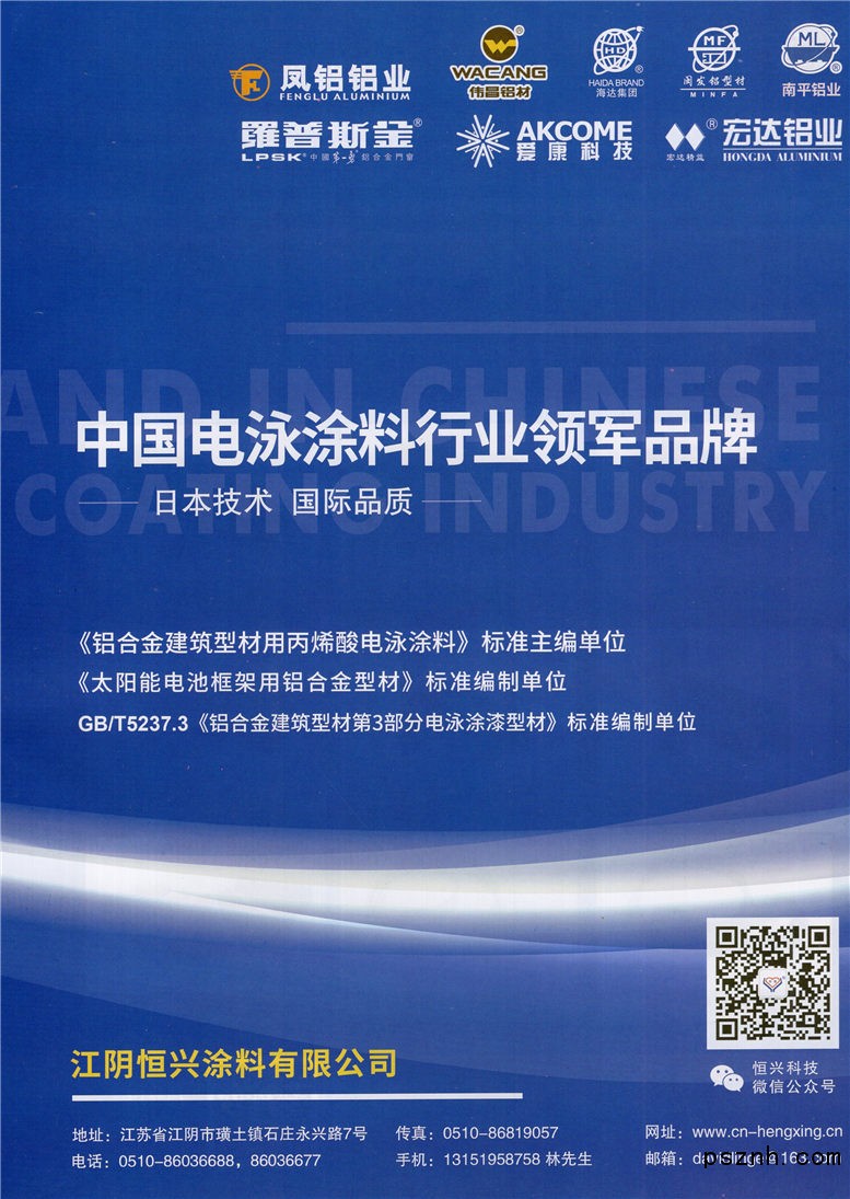 江陰恒興涂料有限公司 HLG-100丙烯酸溶液型有光透明陽(yáng)極電泳涂料 HLG-200丙烯酸乳液型有光透明陽(yáng)極電泳涂料