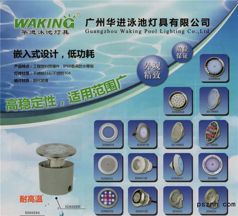 廣州華進(jìn)泳池?zé)艟哂邢薰? 水下不銹鋼泳池?zé)? 塑料水底燈 水景七彩燈