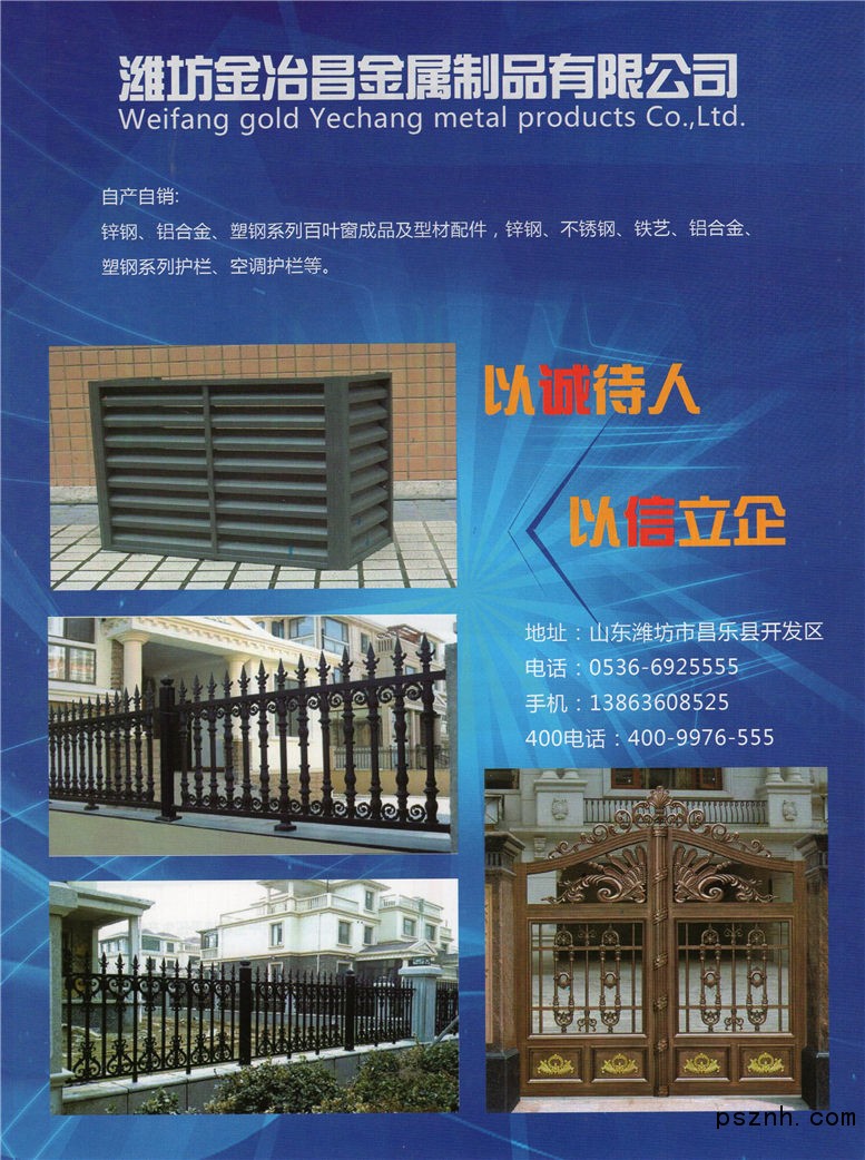 濰坊金冶昌金屬制品有限公司 鋁藝大門_鐵藝大門_鋁藝護欄點擊:601 查看原圖![]() ![]() ![]() 聯(lián)系人: 趙經(jīng)理