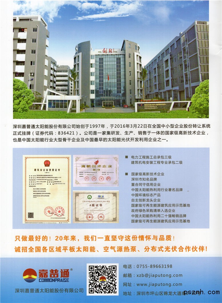 深圳嘉普通太陽能股份有限公司 太陽能光伏產品_太陽能光選擇性吸熱涂層_商用空氣源熱泵