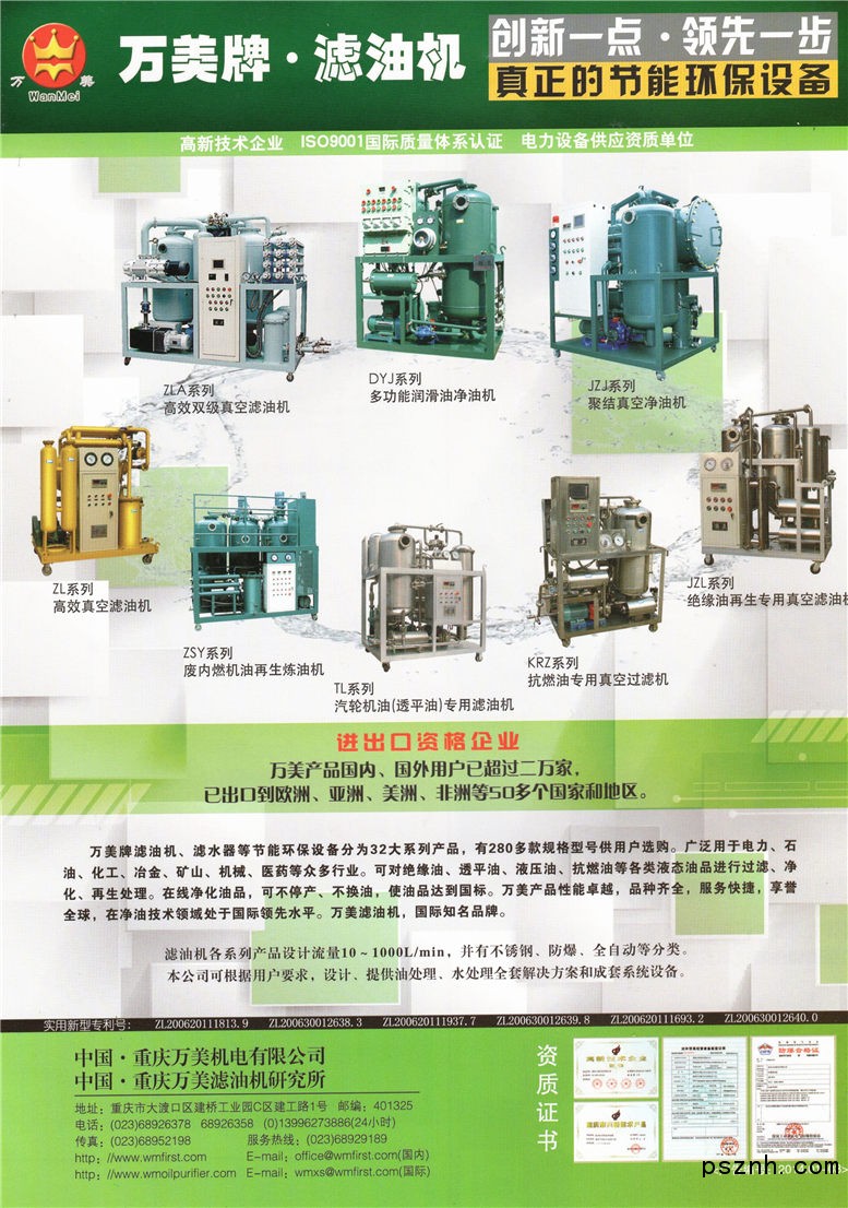 重慶萬美機(jī)電有限公司 潤滑油濾油機(jī) 透平油濾油機(jī) 變壓器油濾油機(jī)點(diǎn)擊:419 查看原圖![]() ![]() ![]() 萬美濾油機(jī)制造基地:重慶市大渡口區(qū)建橋工業(yè)園C區(qū)建工路(1號(hào))