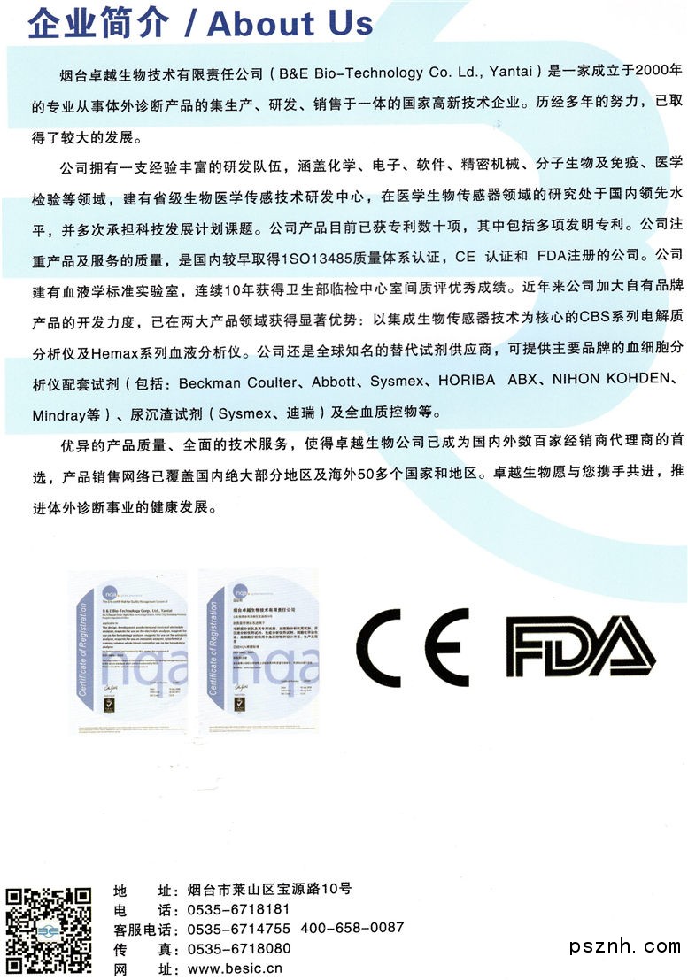 山東卓越生物技術(shù)股份有限公司 血細(xì)胞分析試劑 全血質(zhì)控物 SYSMEX尿沉渣試劑點(diǎn)擊:831 查看原圖![]() ![]() ![]() 客戶服務(wù)電話 4006 580087