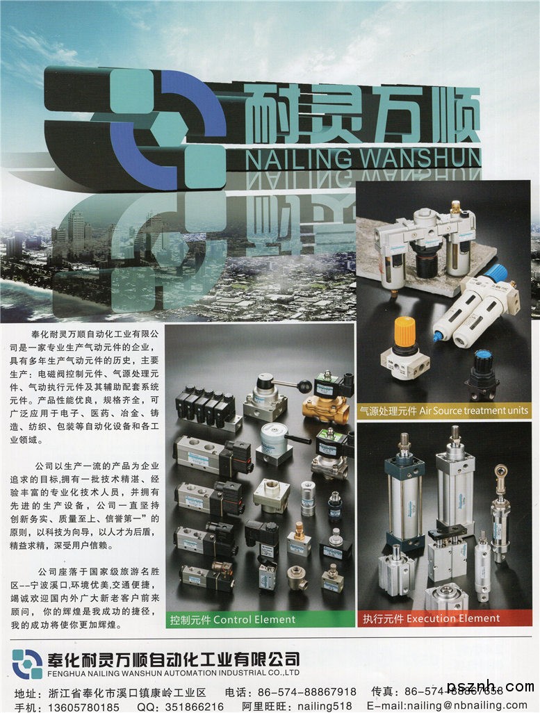 寧波耐靈萬(wàn)順自動(dòng)化工業(yè)有限公司 電磁閥控制元件 氣源處理元件 氣動(dòng)執(zhí)行元件