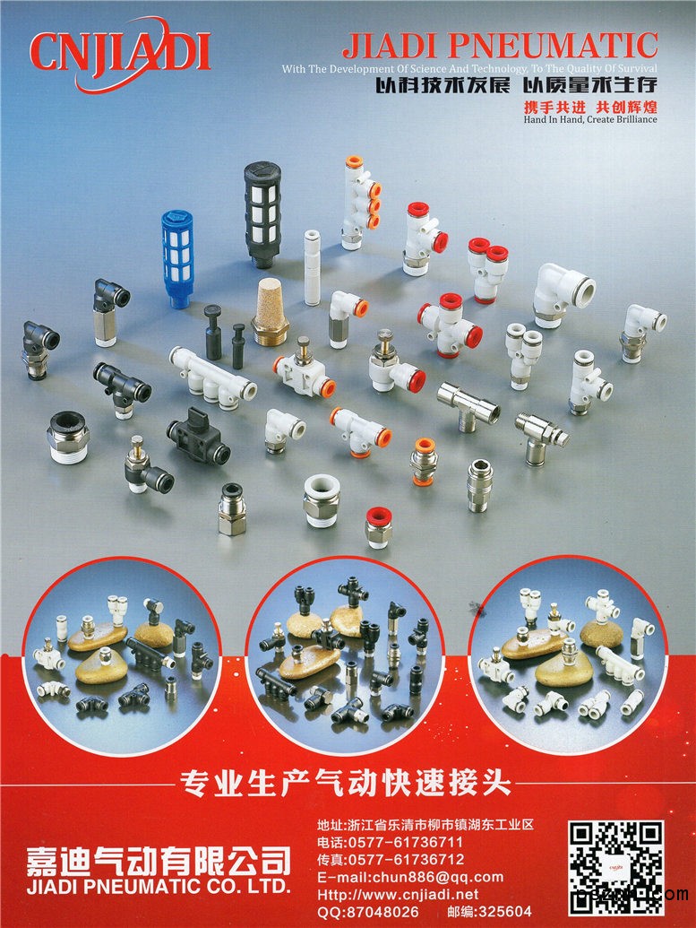 浙江嘉迪氣動(dòng)元件有限公司 快插式氣動(dòng)管接頭 消聲器 單向節(jié)流閥 手閥