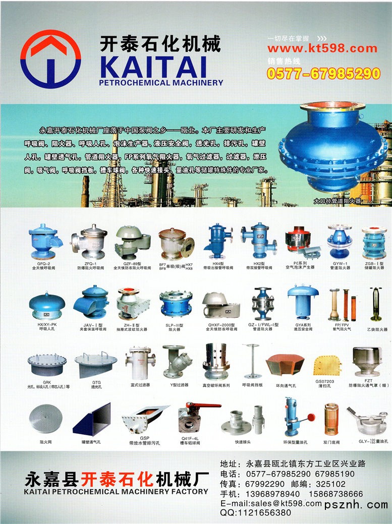 永嘉縣開泰石化機(jī)械廠 呼吸閥 阻火器 呼吸人孔 過濾器