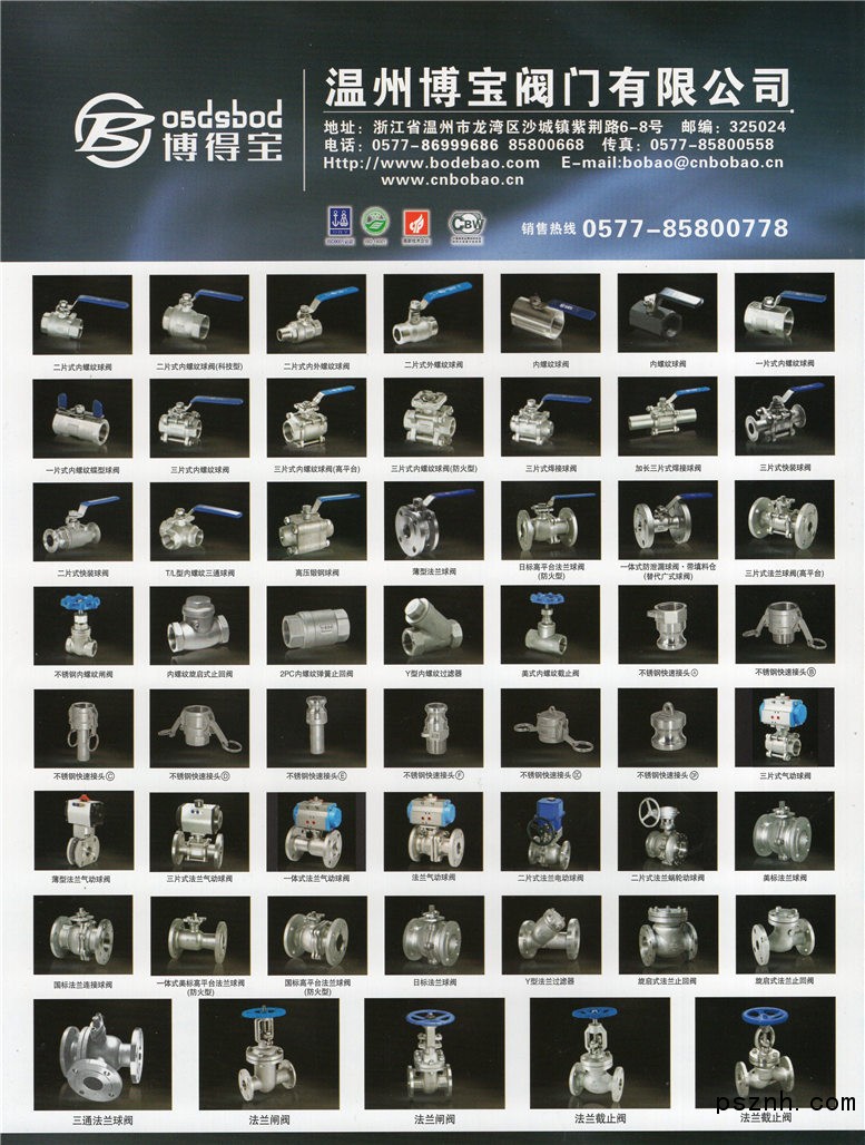 溫州博寶閥門有限公司 球閥 截止閥 止回閥 過濾器點擊:601 查看原圖![]() ![]() ![]() 公司名稱: 溫州博寶閥門有限公司