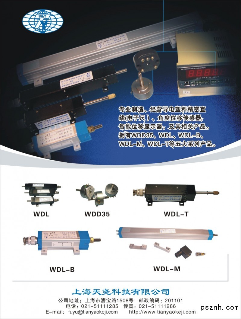 上海天堯科技有限公司成立于1998年,專業(yè)開發(fā)生產(chǎn)導(dǎo)電塑料精密直線(電子尺)、角度位移傳感器及其相關(guān)產(chǎn)品。擁有WDD35、WDL、WDL-B、WDL-M、WDL-T、WDL-A等六大系列位移傳感器產(chǎn)品,以及智能位移顯示器,位移電流轉(zhuǎn)換器,角度檢測器等相關(guān)產(chǎn)品。產(chǎn)品堅持采用熱壓固化工藝制造基體,相比其他采用絲網(wǎng)印刷工藝制造的基體來說,導(dǎo)電涂層更牢固,精度穩(wěn)定性更好,合格使用壽命也更長?,F(xiàn)廣泛應(yīng)用于橡膠、塑料加工機(jī)械、木材加工機(jī)械、數(shù)控機(jī)床、液壓油缸、光電、風(fēng)電設(shè)備、樁基檢測、工業(yè)自動化控制系統(tǒng)等所有需進(jìn)行位移自動控制的機(jī)械設(shè)備及位移測量系統(tǒng)。并有能力根據(jù)用戶的實際需要定制相關(guān)產(chǎn)品。