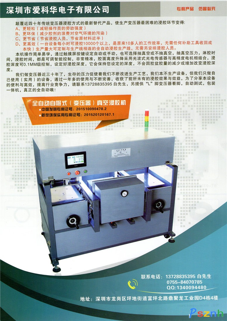 深圳市愛(ài)科華電子有限公司_浸膠機(jī)_變壓器浸膠機(jī)_全自動(dòng)自吸式浸膠機(jī)點(diǎn)擊:579 查看原圖![]() ![]() ![]() 深圳市愛(ài)科華電子有限公司聯(lián)系人:白羽