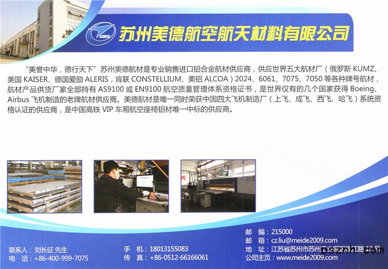 | 公司名稱: | 蘇州美德航空航天材料有限公司 | ||