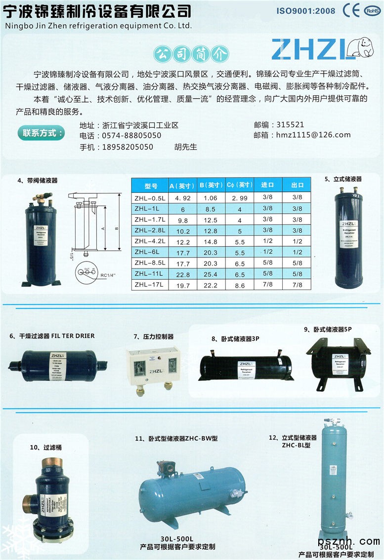 寧波錦臻制冷設(shè)備有限公司 油分離器 儲(chǔ)液器 氣液分離器 過(guò)濾器 壓力控制器點(diǎn)擊:1151 查看原圖![]() ![]() ![]() 浙江寧波溪口工業(yè)區(qū)