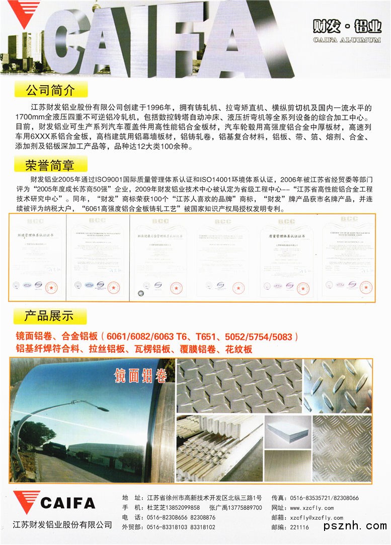 | 公司名稱: | 江蘇財發(fā)鋁業(yè)股份有限公司 | ||