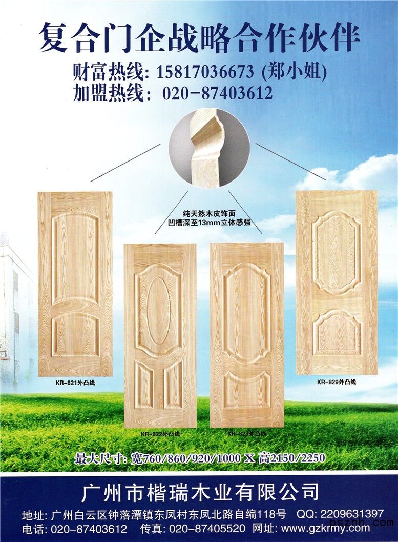廣州市楷瑞木業(yè)有限公司 貼木皮模壓門板_木皮飾面板_三聚氰胺模壓板點擊:518 查看原圖![]() ![]() ![]() 廣州市楷瑞木業(yè)有限公司 地址:廣州白云區(qū)鐘落潭鎮(zhèn)東鳳村東鳳北路118號