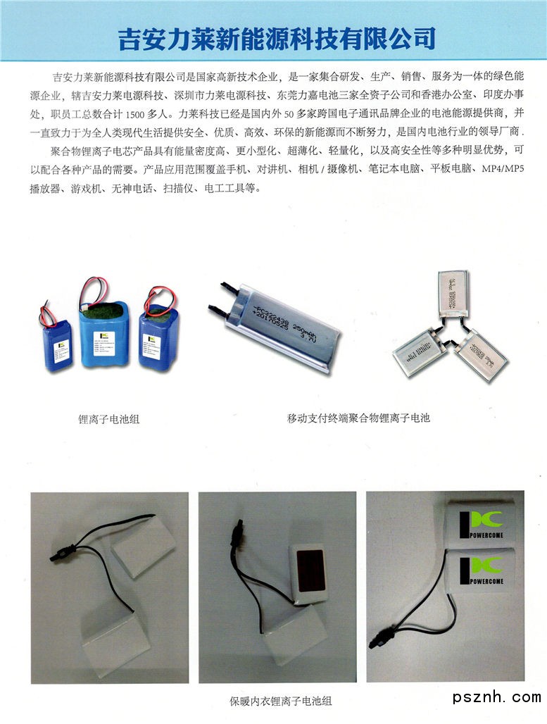 吉安力萊新能源科技有限公司-鋰離子電池_鋰聚合物電池_電池配套產(chǎn)品點擊:1090 查看原圖![]() ![]() ![]() 公司名稱: 吉安力萊新能源科技有限公司