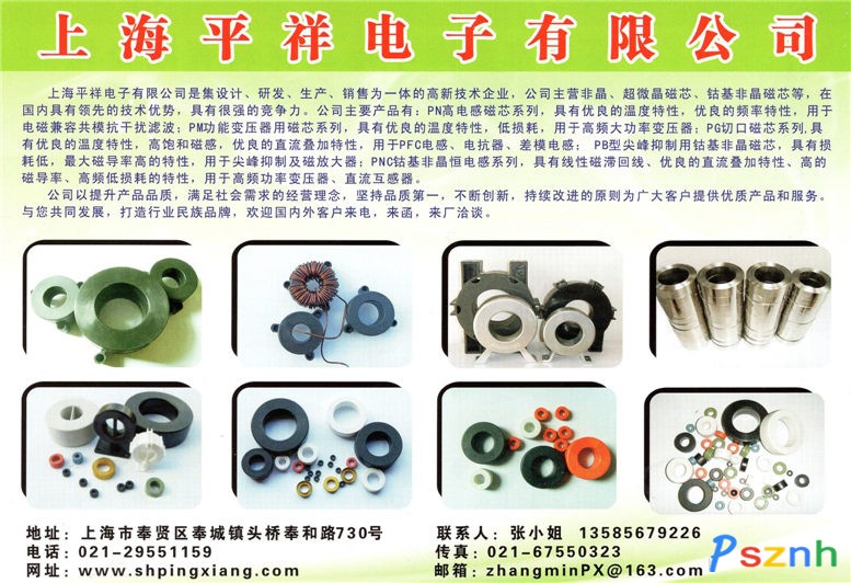 上海平祥電子有限公司_PN高電感磁芯系列_PG切口磁芯系列_PM功率變壓器用磁芯系列點擊:590 查看原圖![]() ![]() ![]() http://www.shpingxiang.com/contact.asp