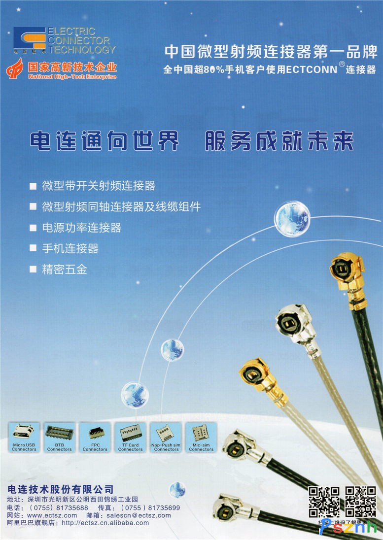 電連技術(shù)股份有限公司_連接器_微型射頻連接器_射頻線纜組件_射頻同軸連接器_精密微間距連接器_數(shù)字信號(hào)/高速類連接器_精密五金