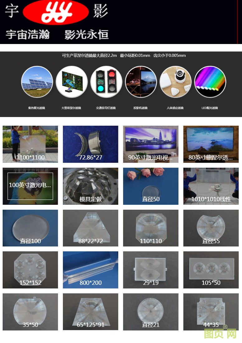 山東宇影光學(xué)儀器有限公司-專注于菲涅爾透鏡的研發(fā)與生產(chǎn),憑借專業(yè)菲涅爾透鏡的研發(fā)團(tuán)隊、上百臺專業(yè)生產(chǎn)菲涅爾透鏡的高精密設(shè)備和專業(yè)高效的銷售團(tuán)隊,為國內(nèi)外上千家客戶(3M、飛利浦、西門子、美的等)提供不點擊:636 查看原圖![]() ![]() ![]() 簡介: