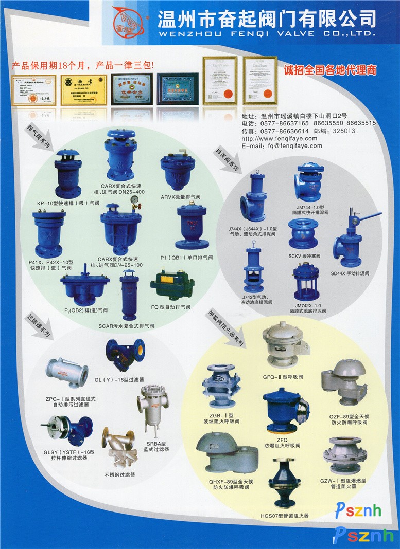 | 經(jīng)營范圍: | 制造、加工、銷售:中、低壓閥門、管件、空壓機配件。 | ||