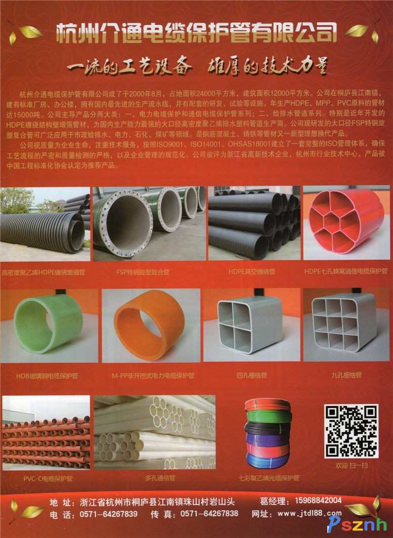 | 公司名稱: | 杭州介通電纜保護(hù)管有限公司 | ||
