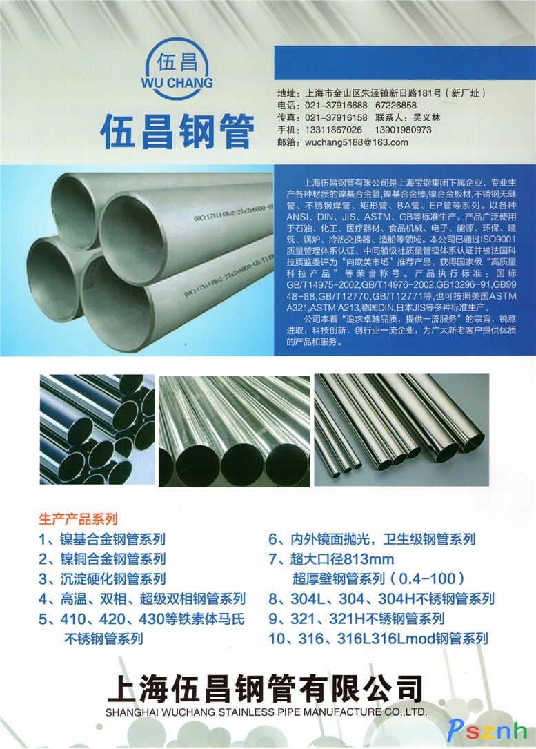上海伍昌鋼管有限公司_鎳基合金管_鎳基合金棒_鎳合金板材_不銹鋼無縫管_不銹鋼焊管_矩形管_BA管_EP管等