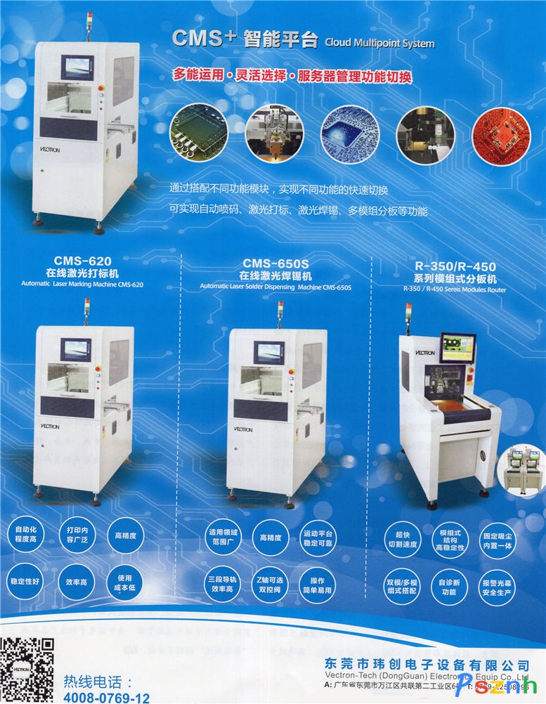 東莞市瑋創(chuàng)電子設(shè)備有限公司 CMS+ 智能平臺(tái) 全自動(dòng)噴碼機(jī) R-400系列模組式分板機(jī) R-500A 在線分板機(jī)