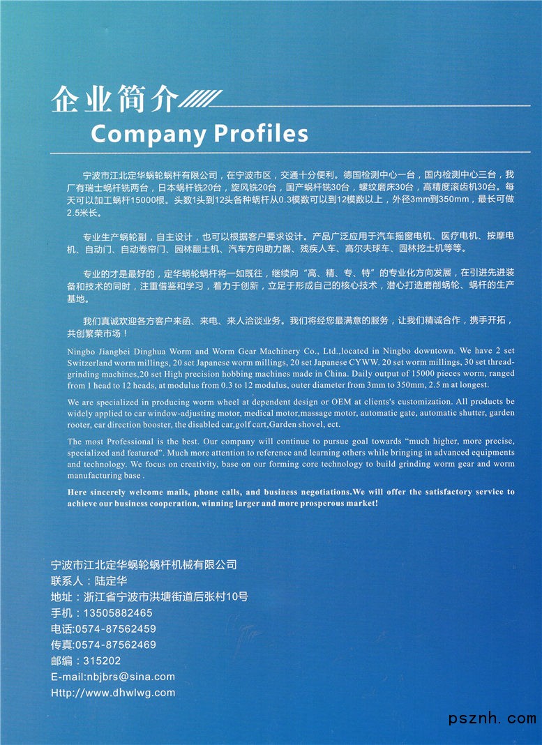 | 公司名稱: | 寧波市江北定華蝸輪蝸桿機械有限公司 | ||