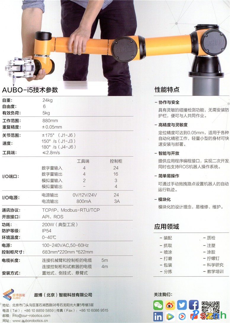 遨博(北京)智能科技有限公司 遨博AUBO-i5 遨博6軸輕型工業(yè)機器人
