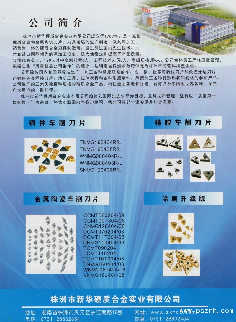 株洲市新華硬質(zhì)合金實(shí)業(yè)有限公司 鋁用刀片 金屬陶瓷刀片 車削刀片 銑削刀片 焊接刀片