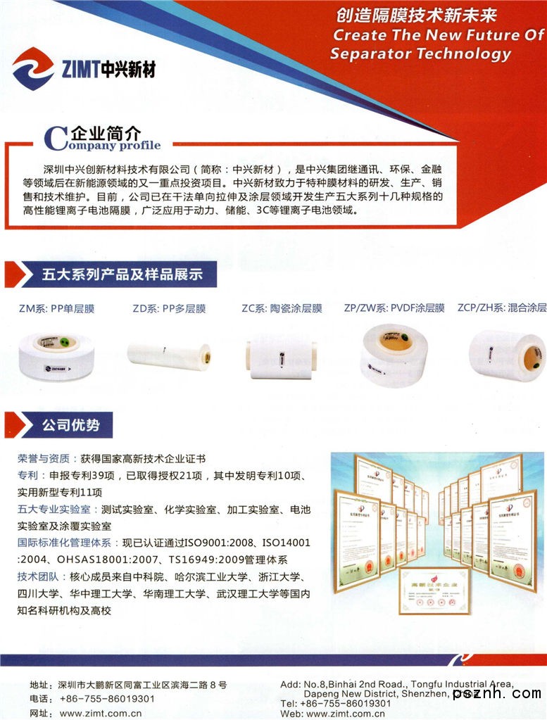 深圳中興創(chuàng)新材料技術(shù)有限公司 鋰離子電池隔膜 特種高分子膜材料 特種膜材料 干法單向拉伸及涂層 深圳電池展點(diǎn)擊:1475 查看原圖![]() ![]() ![]() 1、公司地址: