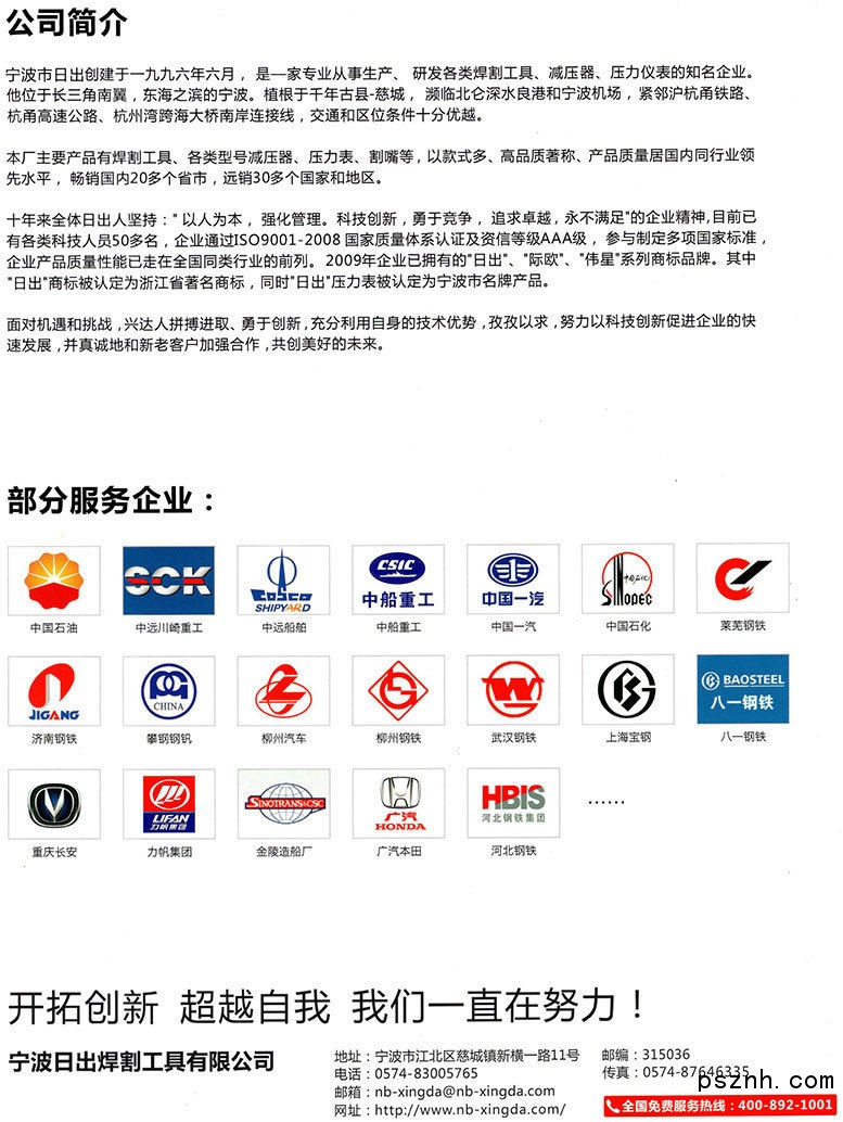 寧波市江北興達(dá)焊割減壓儀表廠 焊割工具、減壓器、壓力表、割嘴