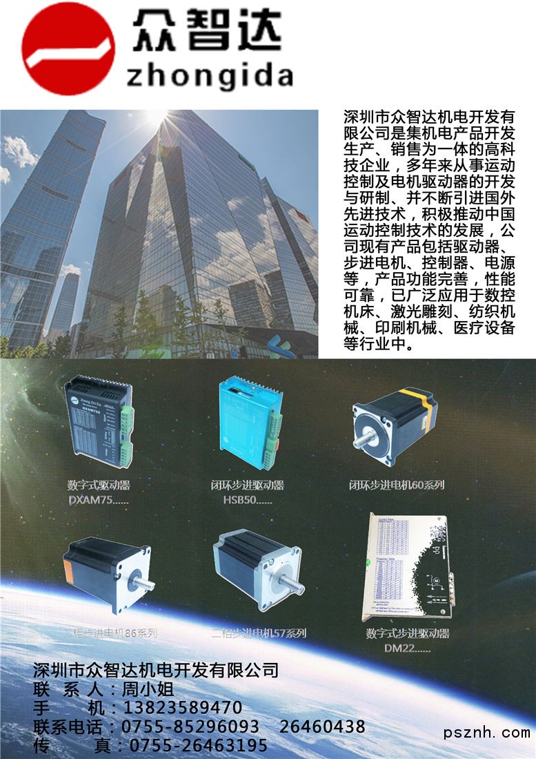 深圳市眾智達(dá)機(jī)電開發(fā)有限公司 驅(qū)動器、步進(jìn)電機(jī)、控制器、電源 華南自動化展點(diǎn)擊:1138 查看原圖![]() ![]() ![]() 聯(lián) 系 人:周小姐