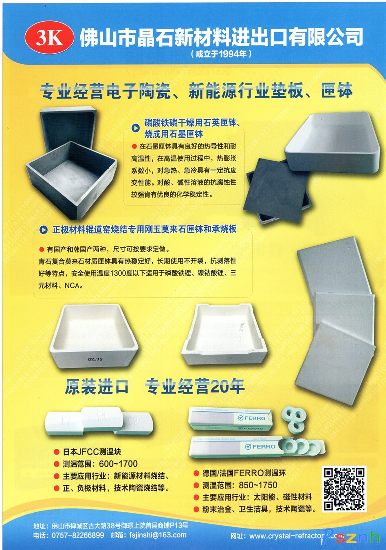 佛山市晶石新材料進出口有限公司 鋰電池耐火材料 鋰電池原料行業(yè)正 負極專用燒結匣缽點擊:732 查看原圖![]() ![]() ![]() 佛山市建嘉建材有限公司