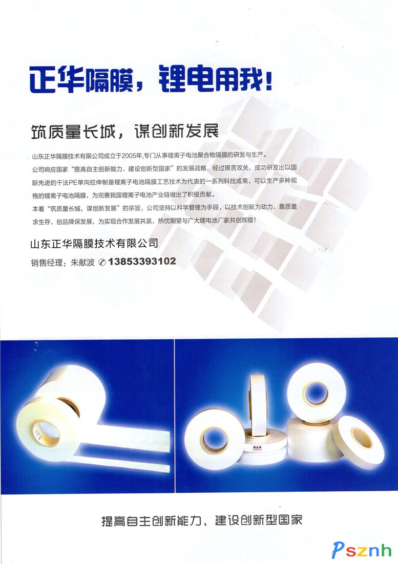 山東正華隔膜技術有限公司 鋰離子電池隔膜 鋰電池 新型電源技術點擊:1097 查看原圖![]() ![]() ![]() 聯(lián) 系 人:崔福新