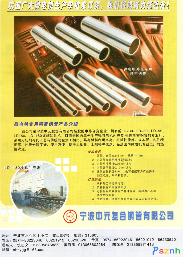 | 經(jīng)營(yíng)范圍: | 特種精密鋼管、無(wú)縫鋼管、機(jī)械配件制造、加工。 | ||