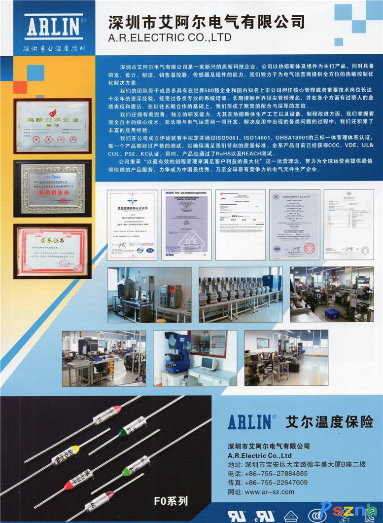 深圳市艾阿爾電氣有限公司 溫度保險絲 突跳式溫控器 特殊構造品溫度保險絲