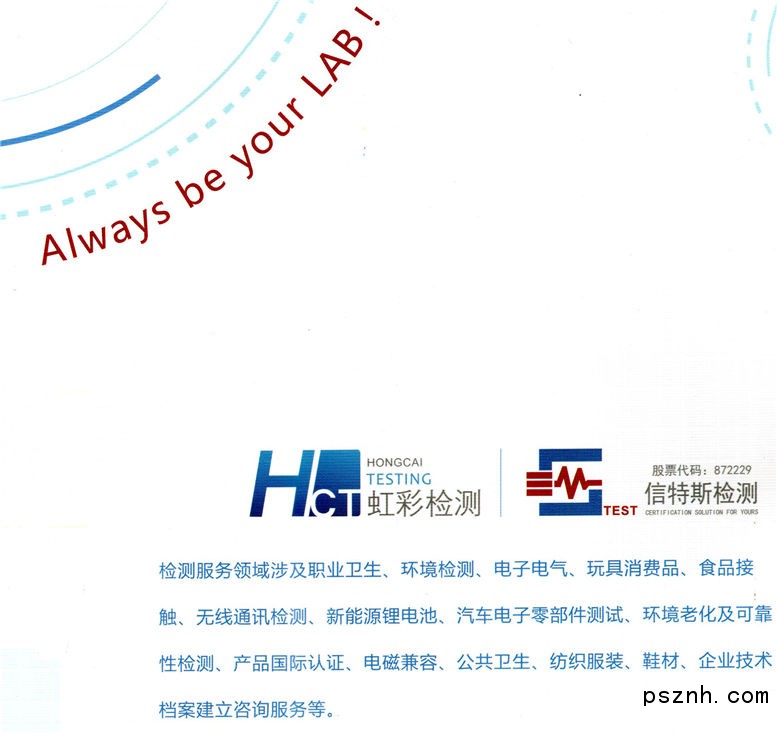 | 經(jīng)營范圍: | 安全技術(shù)咨詢;安全標(biāo)準(zhǔn)化信息咨詢;安全技術(shù)的技術(shù)開發(fā)與技術(shù)推廣。^消費用品、工業(yè)產(chǎn)品、電子電氣產(chǎn)品的測試分析;電動玩具的電磁兼容及安全的測試分析;環(huán)境、廢氣、原水、廠界噪音檢測;從事安全評價活動;電子電氣產(chǎn)品的電磁兼容與安規(guī)檢測、環(huán)境可靠性測試;電池安全性測試;職業(yè)衛(wèi)生檢測及評價;公共衛(wèi)生檢測及評價;為企業(yè)提供安全生產(chǎn)管理服務(wù)。 | ||
