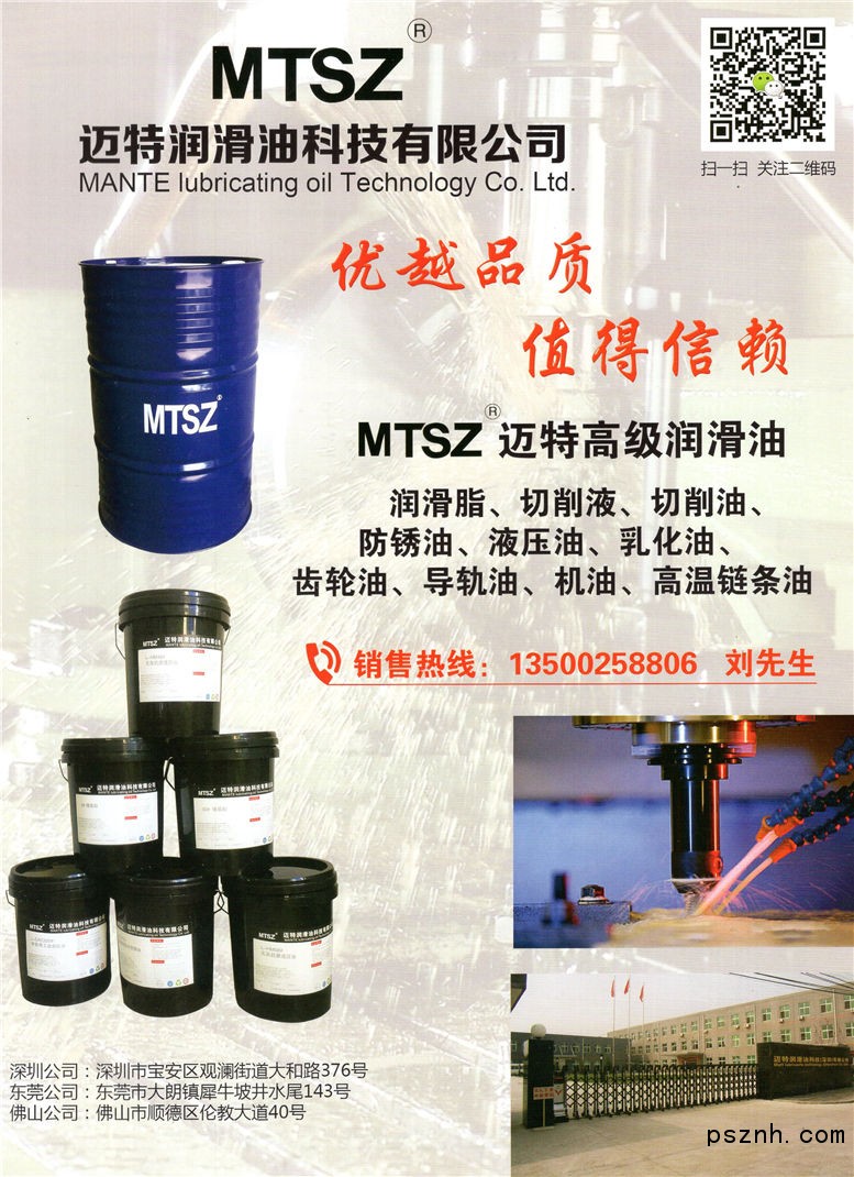 邁特潤(rùn)滑油科技(深圳)有限公司 切削液、磨削液、潤(rùn)滑油、潤(rùn)滑油添加劑、液壓油、機(jī)油、防銹油點(diǎn)擊:687 查看原圖![]() ![]() ![]() 公司地址: