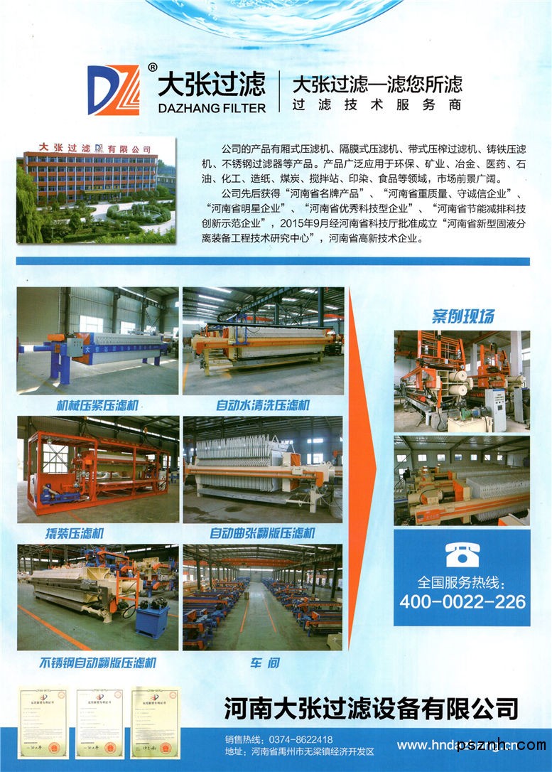 河南大張過濾設(shè)備有限公司 隔膜式壓濾機(jī)、帶式壓榨過濾機(jī)